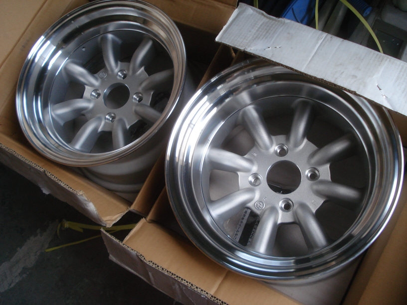 こちらは先月APレーシングのキャリパー塗装でお世話になりましたオーナー様からの二度目のご依頼品で、ハコスカに装着予定のワタナベホイール(新品)×4本です。