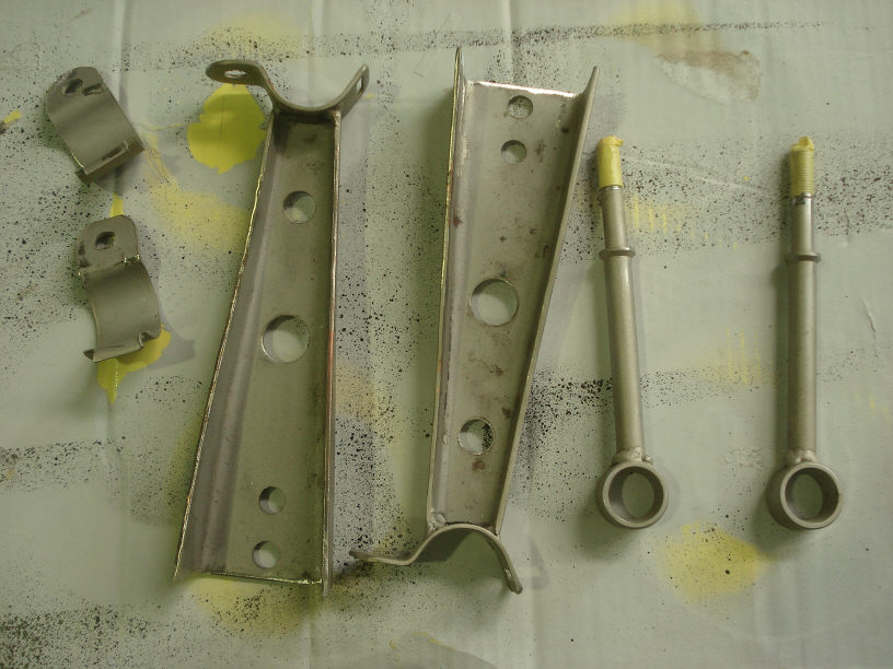 本塗り前の状態です。殆どプライマーが塗られた状態で、一部黒が残っているパーツはアルミアルマイトでは無く、スチール(鉄)製のパーツで黒が塗られている物です。こちらは足付けのみで本塗りOKですのでご安心下さいませ。