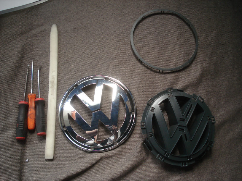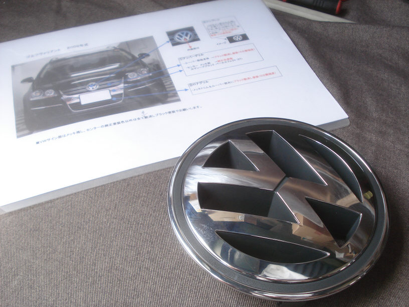 こちらはフロントグリルに装着されるVWのエンブレム部分ですね。