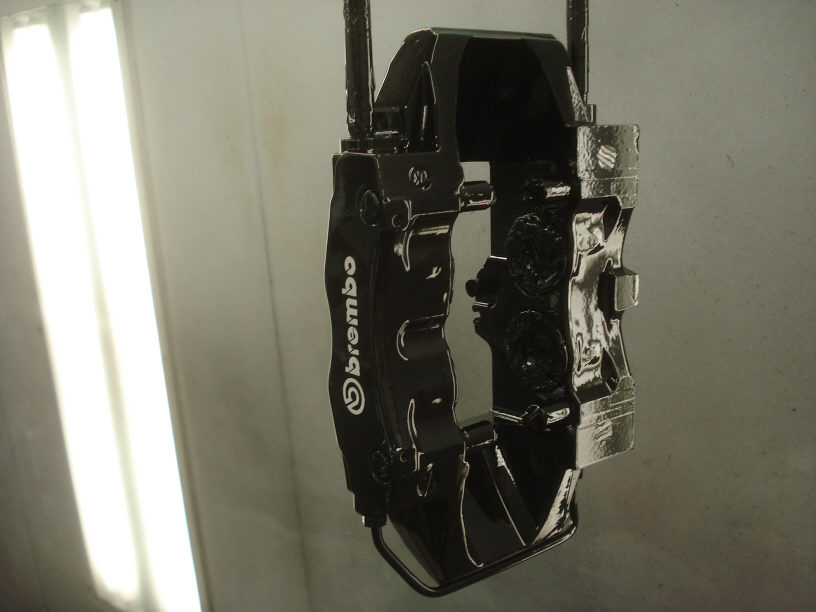 こちらはいつものブレーキ関係の業者さんからのお仕事で、こちらも黒でしたので本日塗っておきました。黒は意外と珍しいですね(殆どが赤か黄色かゴールドですので)。