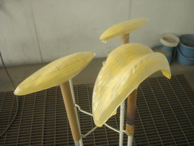 一つ一つ手に持って、もう片方の手でスプレーします。そうしないとちゃんと塗れません。 これを69個(×4回くらい)繰り返すのは流石に今までも経験がありませんでして、まさに苦行かと思いました(爆)。右腕は腱鞘炎で痛いです。