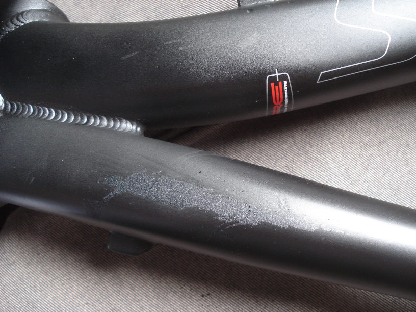 当初は塗膜剥離は必要無いんじゃないかと思っていましたが、このフレームの新車塗膜、爪で擦るとポロポロと削れてしまいます(酷)。
