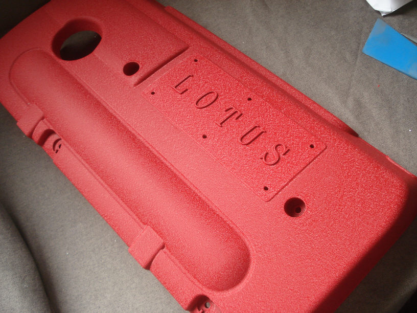 ロータスエリーゼ搭載エンジンのプラスチックカバーですが、ベースがトヨタエンジンなので(最近はEV=電気自動車のテスラでしたっけ?モーター積んでますよね)、今回凸文字部分をロータスに変更です。