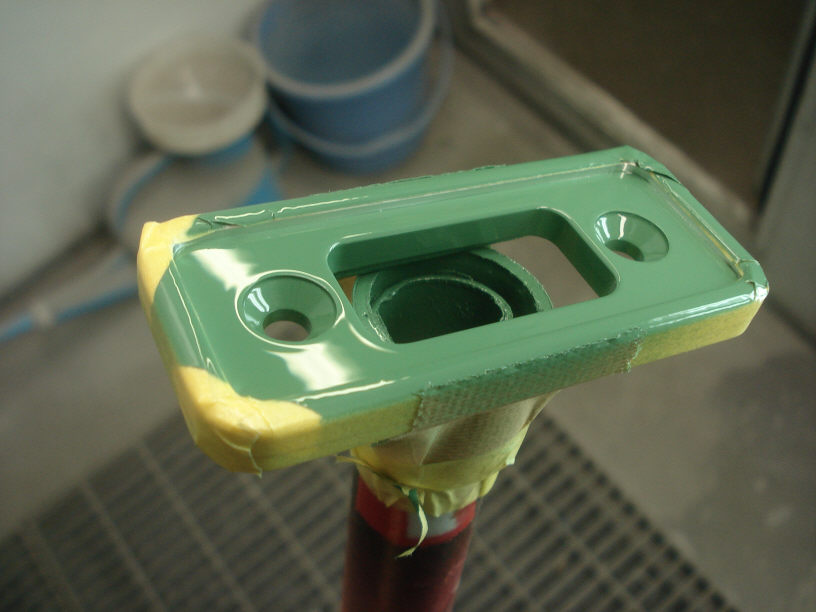 そしてベースコート(モスグリーン)塗ってクリアー塗って、即マスキングを剥がします。