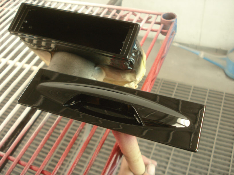 ギアーの土台部分の内側のパネルですね。こちらはやはりオーディオパネルからの延長で「艶々の黒」でご依頼頂きました。