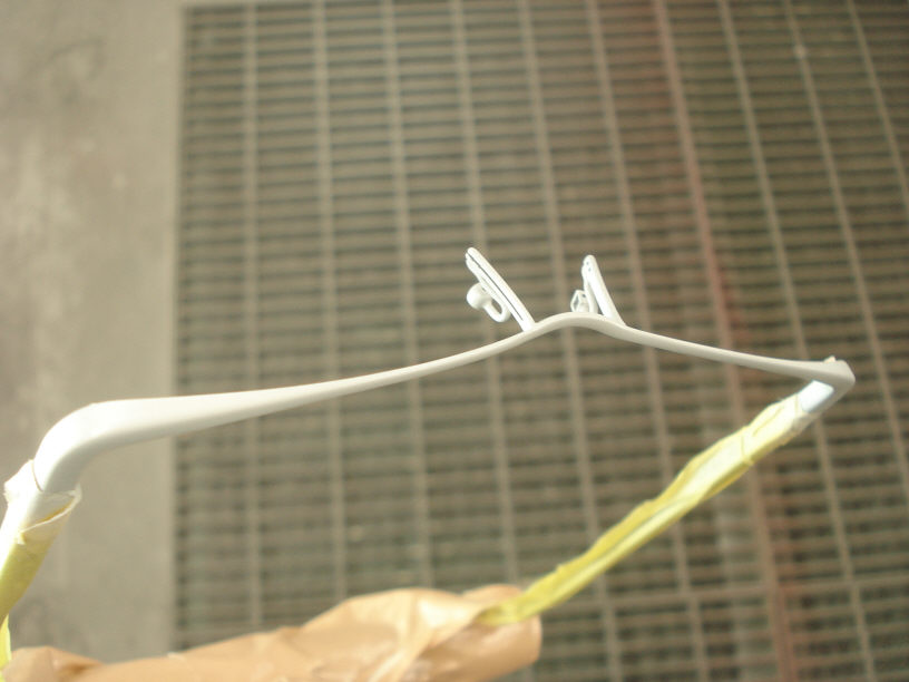 ツルの部分が外せなかったので、先にフロント部分を塗り終え、完全硬化したら今度はツルの部分の塗装になります。ツルの方はフロントに比べて難題も少ないのでここまでこれば安心です。 私的に難しい事(悩む事ですね)は先に終わらせないと気が気ではありませんのでちょっと先行させて頂きました。これで悪夢に襲われなくて大丈夫そうです(本当)。