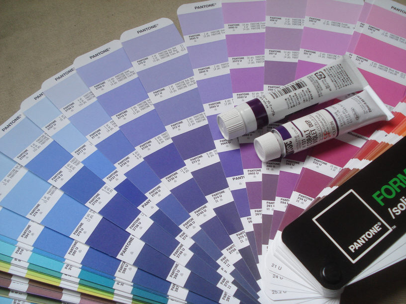 いつも使っている色見本帳は「自動車の内外装」の色データなので、「紫」は余り採用されていないんですよね。