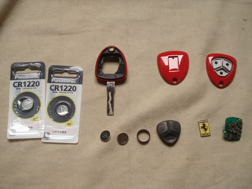画像は組み付け前の状態ですね。鍵一個なのに随分部品点数が増えましたね(笑)。前回同様、電池は新品に交換致します。