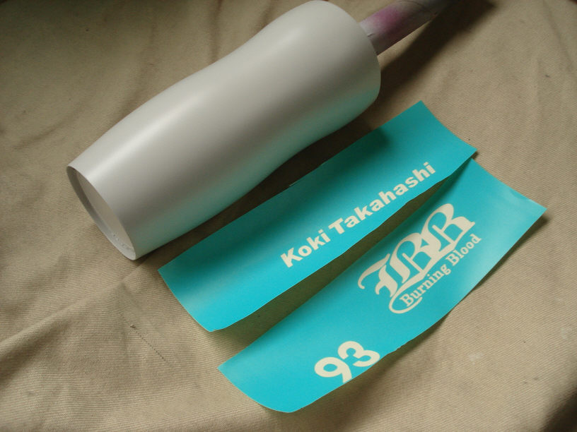 で、頂いた画像からロゴデータを作製し、カッティングシートを作製します。 チームロゴの他に、レーサーの名前と番号もご依頼頂いてます。