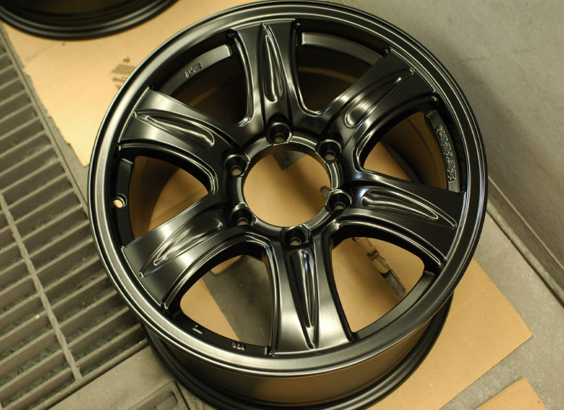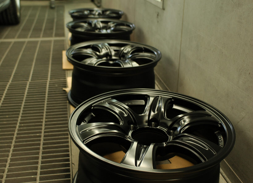 と言う事で、「半艶黒」仕様のホイール塗装完了です! 既に焼き終わっておりますが、梱包〜発送までもう少し時間掛けたいですので今しばらくお待ち下さいませ。