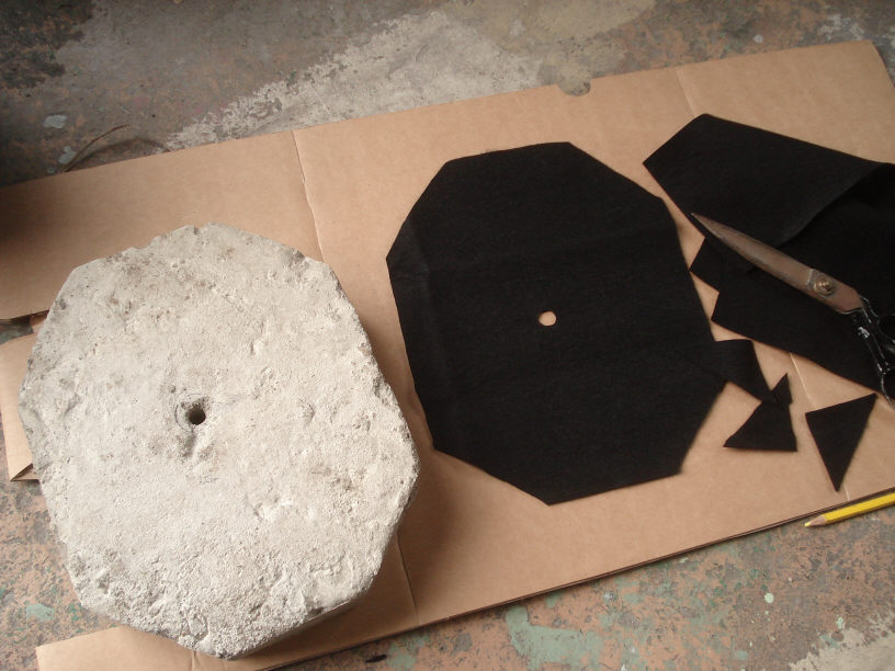 が、元々は台に直接固定されていたので塗装も傷が付いてそこから錆が出てしまっていたので、一応石と台の間に厚めのフェルト生地買っておいたので敷いておきました。