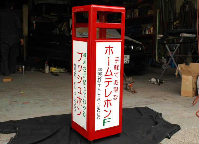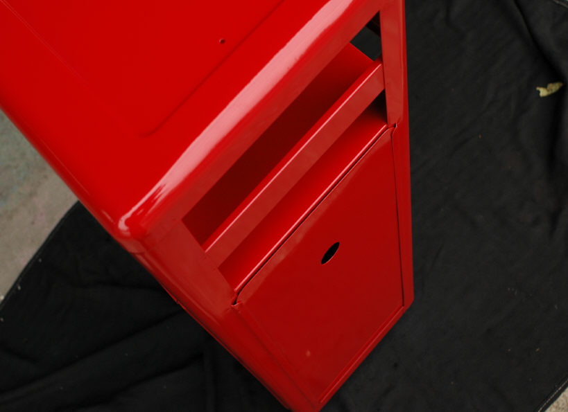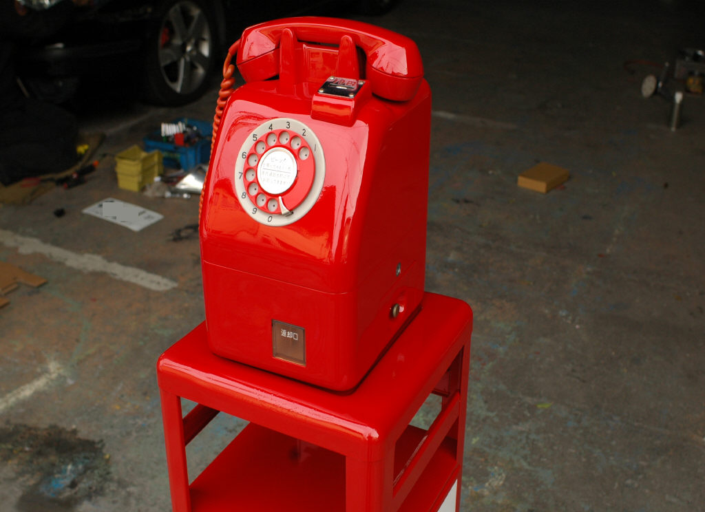 電話機は元の色から近似色のデータで作って、台の方はオーナー様よりNISSANの「カラーコード:013」で承っておりました。013の方は結構濁った色なので実際には似て全然非なる色なのですが、写真で見ると赤は同じ様に見えてしまいますね。