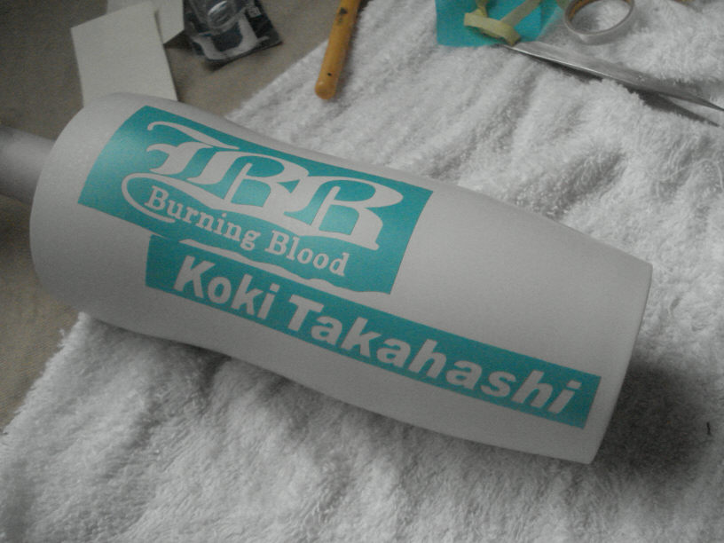 色の配色としては、「ベースを赤に、文字を白に」です。 サフェーサーの上にシール貼っても駄目ですよね…まずは赤を塗らないと。