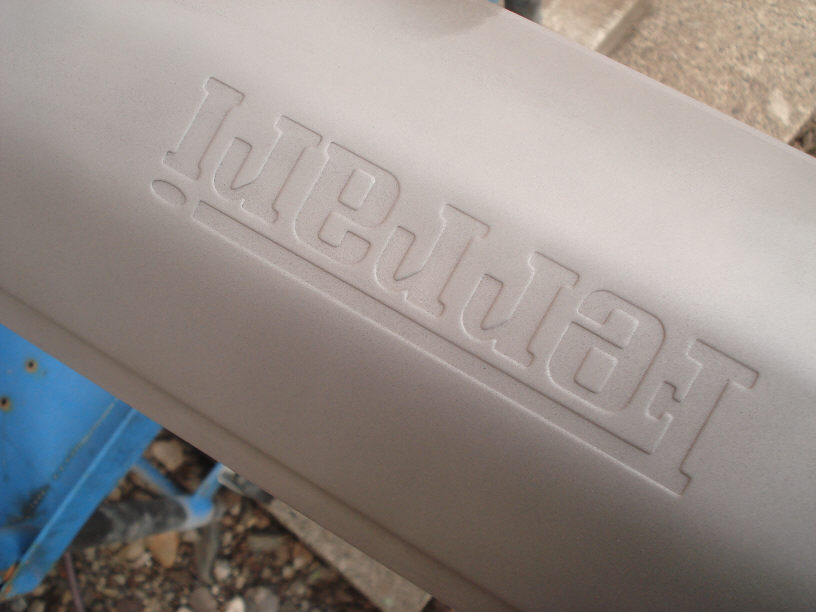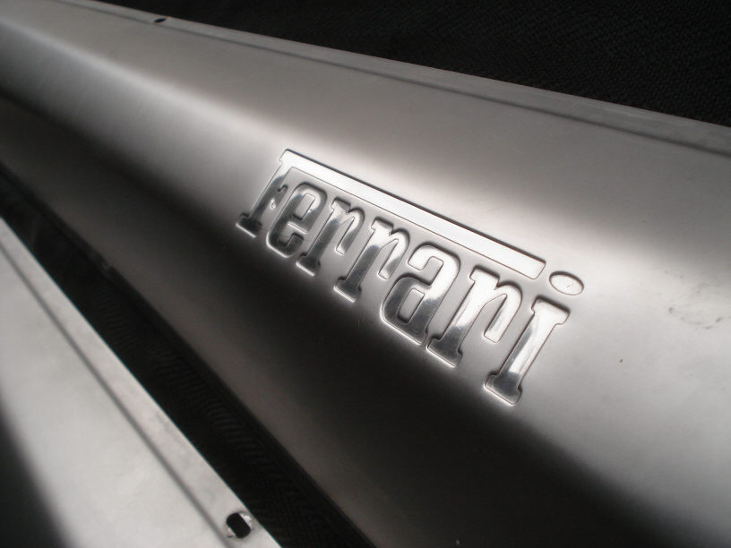 ステップカバーはステンレス製で、文字部分はパンチング(?)処理されていて凹んでいます。 この「Ferrari」のロゴ部分をフェラーリの赤(ロッソコルサですね)、そして全体を「濃い目の紫」で承っております。