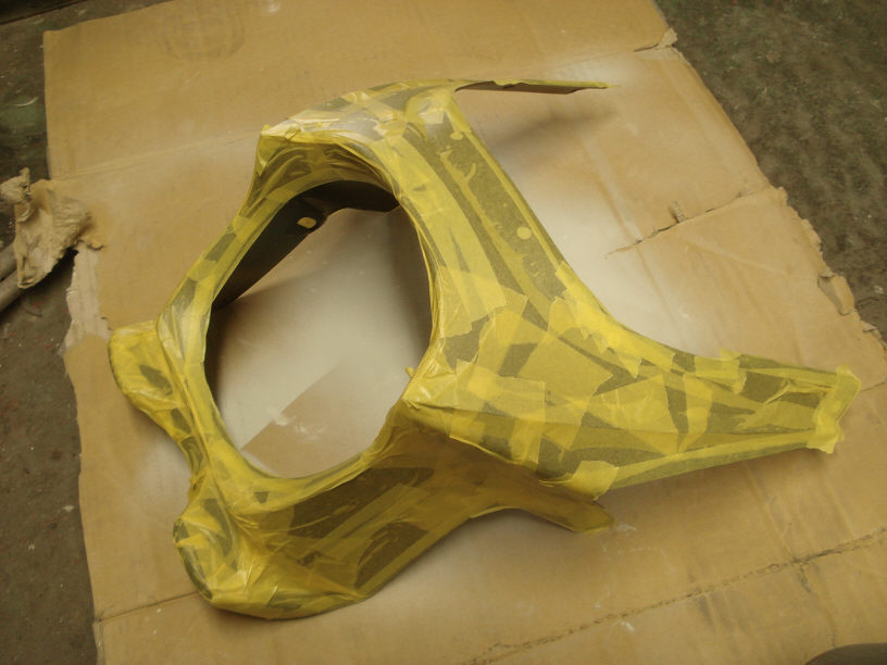 こちらは裏だけの塗装でご依頼頂いていたバイクのビキニカウルですね。ヘッドライトの部分のカウルです。