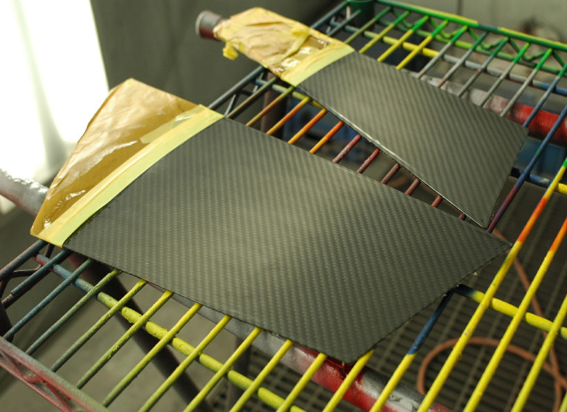 画像の板は3通りの中で一番塗った物ですね。若干カーボン目が見えます。 光源を背にしてみればちゃんとカーボン目は確認出来ます。