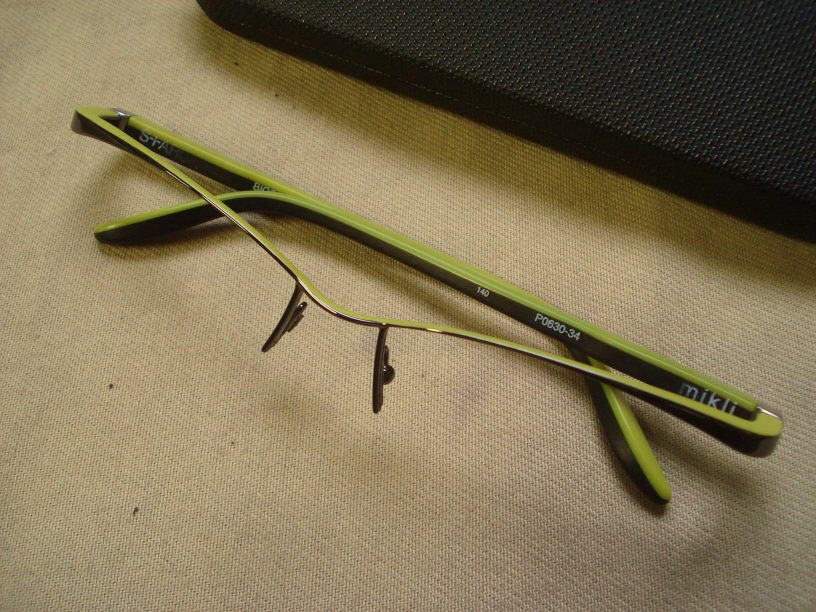耳に掛かる部分(つる・テンプルと呼ぶのですね)とフロント部を繋ぐ蝶番が特殊なようで外す事が出来ませんのでこちらはマスキングで行います。