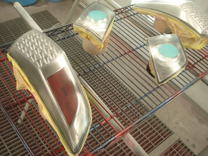 これに、それぞれの車体に合わせたブラケットを作製し(私じゃありません)、素地調整(サンドブラストですね)を行って脱脂してマスキングした状態で私の元にやってきます(怖)。