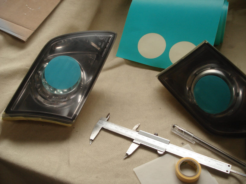 という事ですが、楕円だと張るのも難しいです(苦笑)。 が、今回は本塗りまで時間があったので、いつもとは違って水を使って張りました。普通のスモークフィルム貼るような感じですね。これなら失敗しても張りなおしが簡単ですから位置調整をじっくりやって合わせられます。