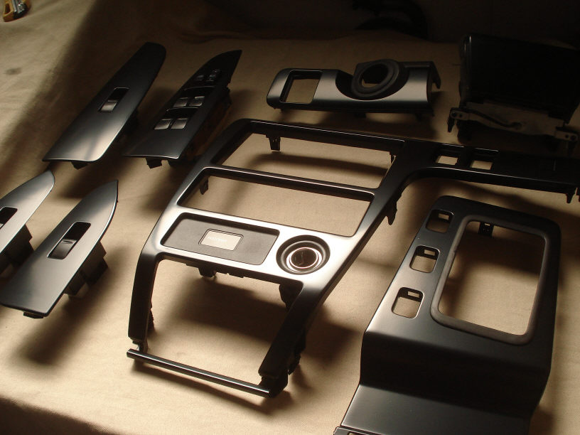 が、これは艶具合だけでは無く、素地の違いでもあります。メーターカバーは表面が凸凹していますので、このまま塗ってもイメージどおりの質感にはならないと思いますので、一旦この素地を平滑に仕上げます。研磨とサフェーサーの塗布と研磨の工程ですね。