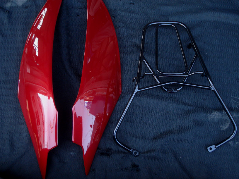 -342- スクーターのカウルカバーとキャリアスタンドの塗装承りました!