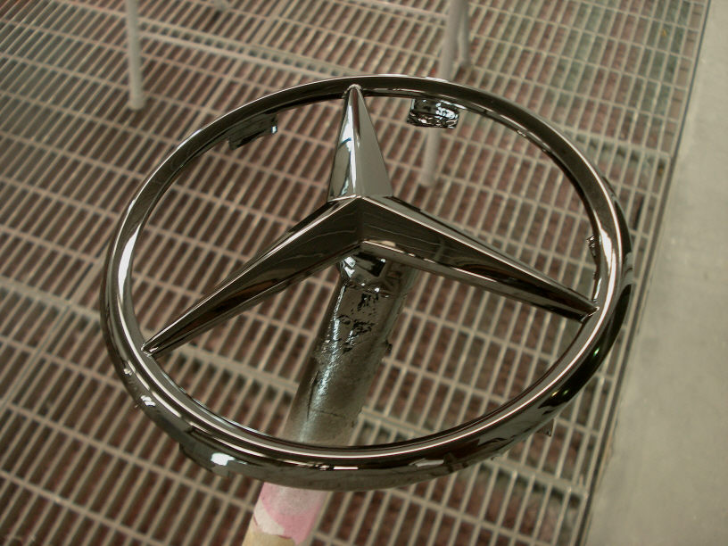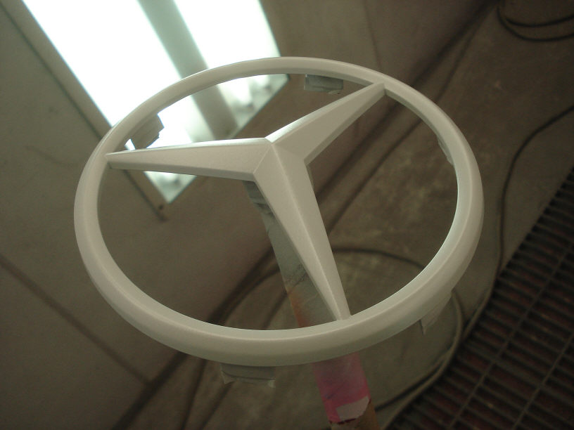 で、大変お待たせしました!ベンツのAMGグリルですね。 いよいよ本塗りです。スターもあります。