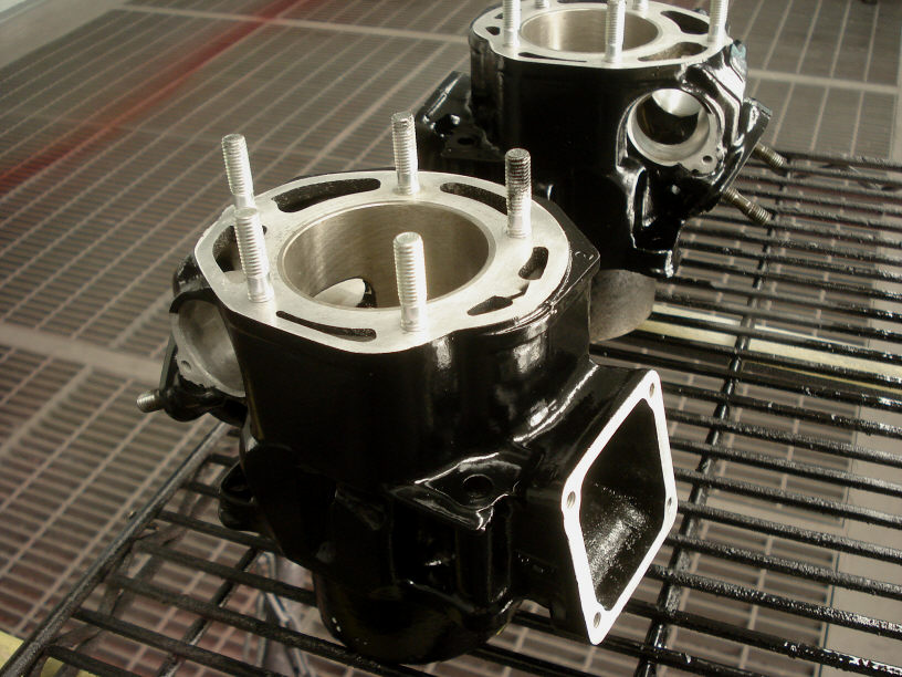 大変お待たせしております。RZのエンジンシリンダーとヘッドカバー、その他小物一式ですね。エンジンヘッドは赤の結晶塗装に、シリンダーは純正のような半艶黒仕上げでご依頼承っております。