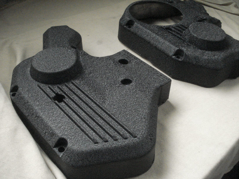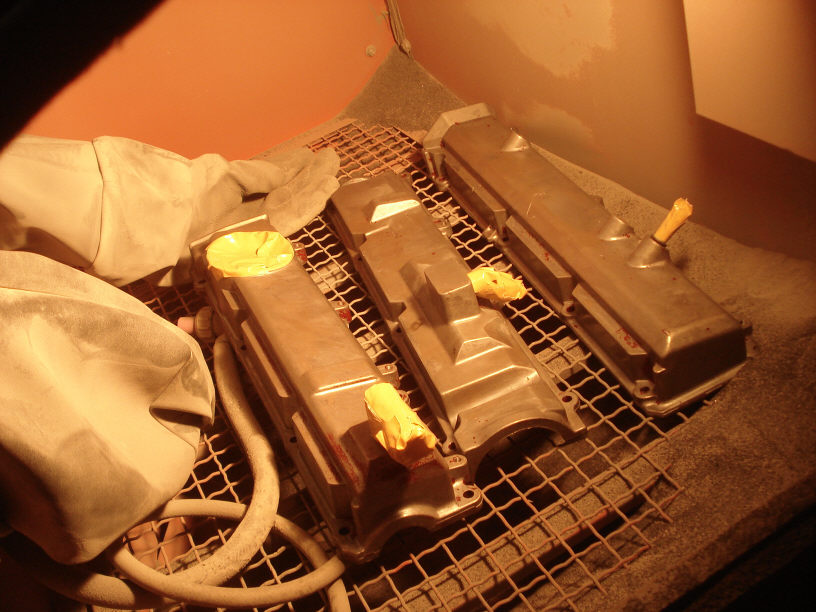 形もイビツなので、手作業で足付け処理をするよりはサンドブラストで一緒に処理してしまった方が早くて確実なのでそうします(しました)。画像がそうですね。タペットカバーも綺麗になりました。