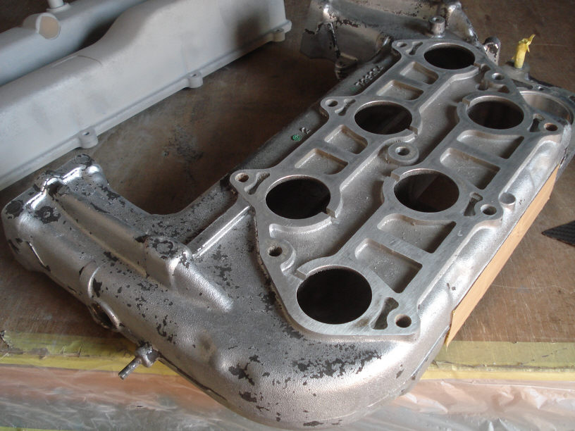 下記のヘッドカバーとセットでご依頼頂いているサージタンクですね。外見は古い塗膜が除去されているだけのようですが、内部は凄く綺麗になりました…(疲)。