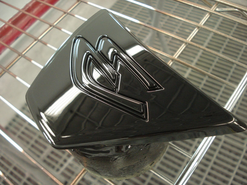 ちなみに現在このメッキ調の塗装は承っておりません。 使っている塗料の「モトクローム」がどうにも密着性が悪いと感じるんですよね。材料が高い癖に(750ccで3万円くらいです…)リスクも高いのでは到底仕事では使えませんよ…(辛)。