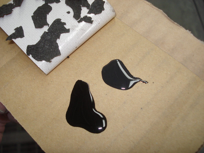 調色といっても、オーナー様より「黒に近いグレーで」といったご要望ですので、既存の塗膜(破片)を確認しながら、黒に白を入れて色を作ります。