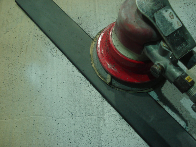 最初は#180で削り、その後#240でケバ立ちを抑えます。どちらも手研ぎでは無く、ダブルアクションサンダーを使います。