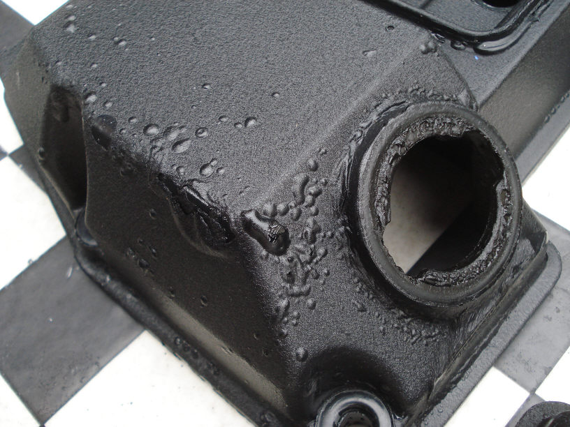 それにしても奥のヘッドカバーは結構ヤラれていますね…。風化しかけているように見えますが…。 が、表面をサンドブラストで一皮剥いてあげれば問題無いかと存じます。単体金属製品の良い所ですね。再生が簡単に効きます。