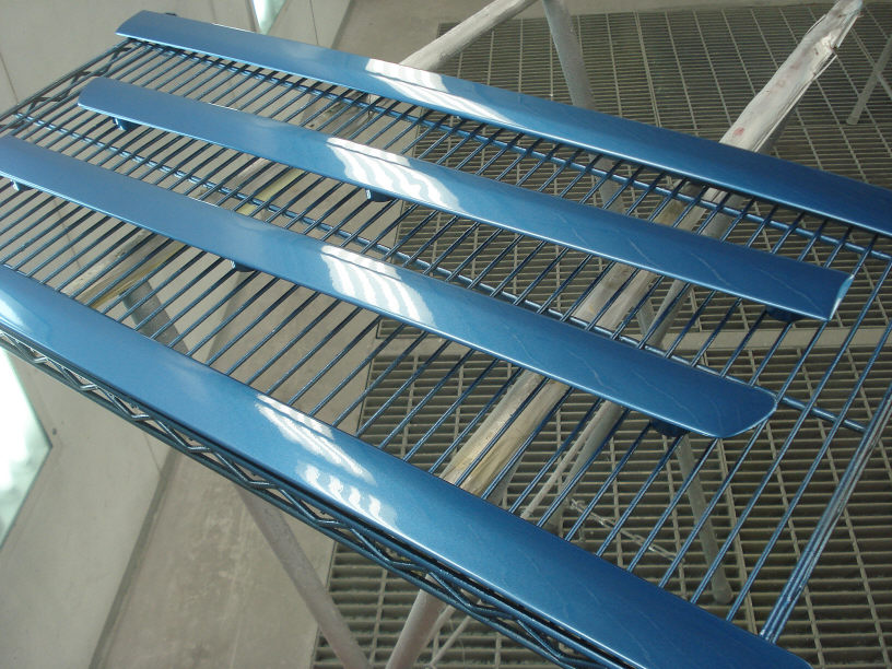またこのようなフニャフニャなモールの場合、塗装時に直接台に置いても曲がってしまいますので、台の上にダンボールを敷いたり、画像に写っているような板(棚板ですね)を置いて塗ります。