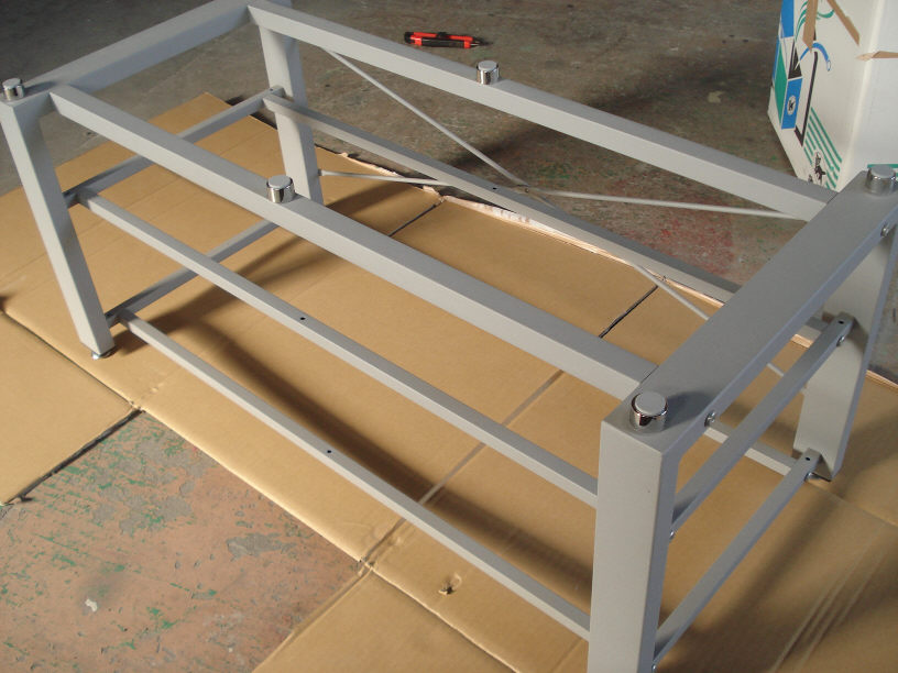こちらは分解前の状態ですね。テレビ台のフレームです。本当はこのままの状態で「一品」として塗る予定でしたが、そうもいかないようでして(いつもの事です)分解しての作業に変更です。 2010/01/27
