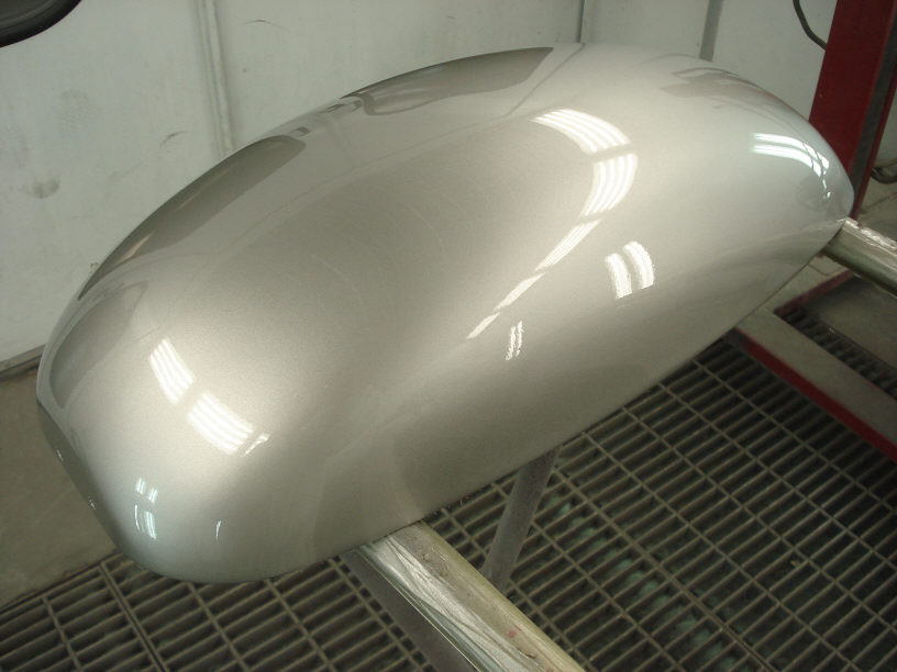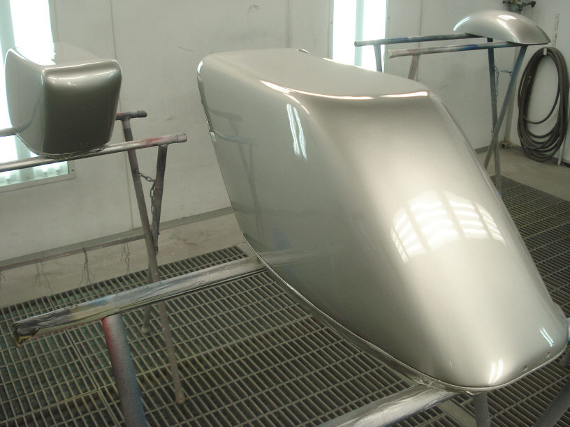 そして本塗り完了です。色はバイクの車体に合わせたシルバーで、近似色のFIATのシルバーを採用しています。 2010/01/27