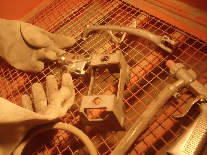 サンドブラストが終わったら次はリン酸で処理します。物理的な「研磨作業」と、化学的な「エッチング処理」ですね。 2010/01/30