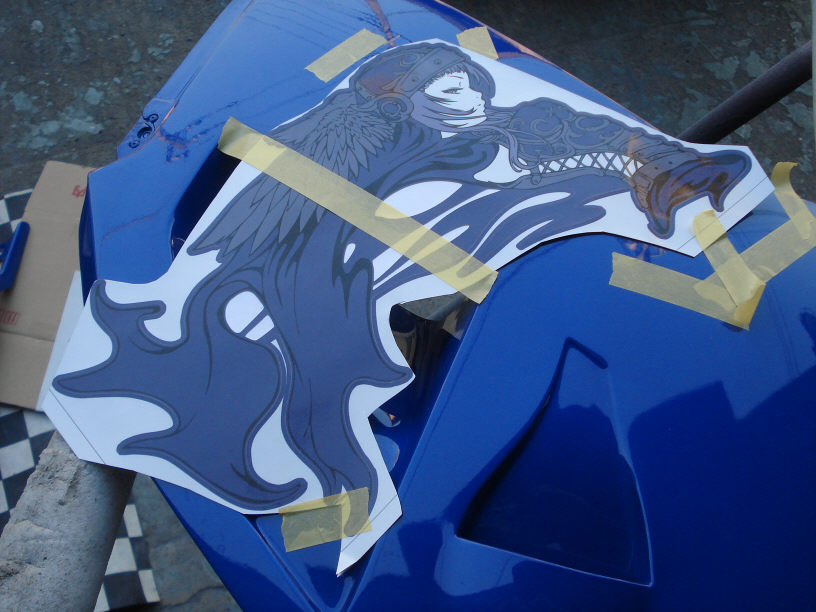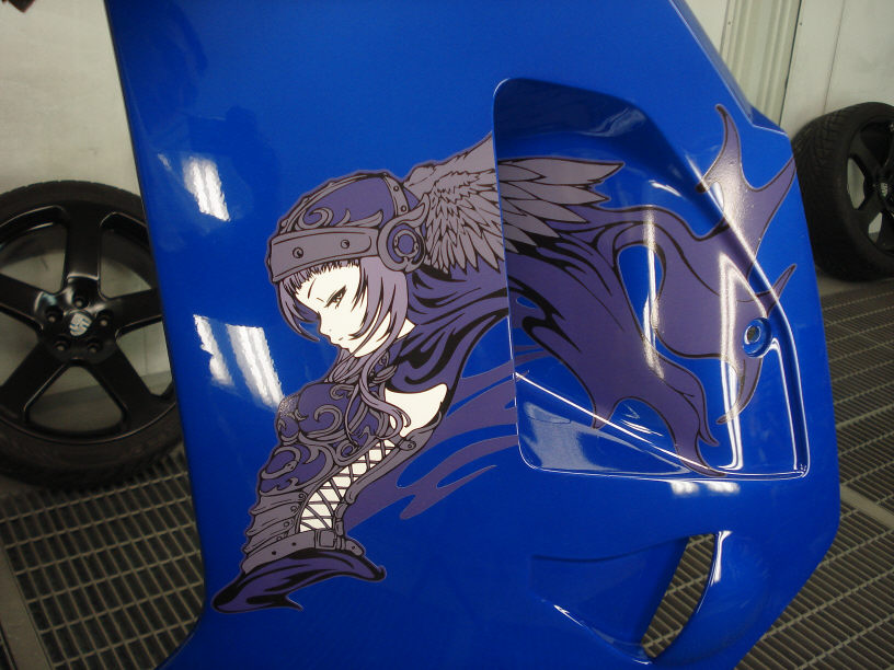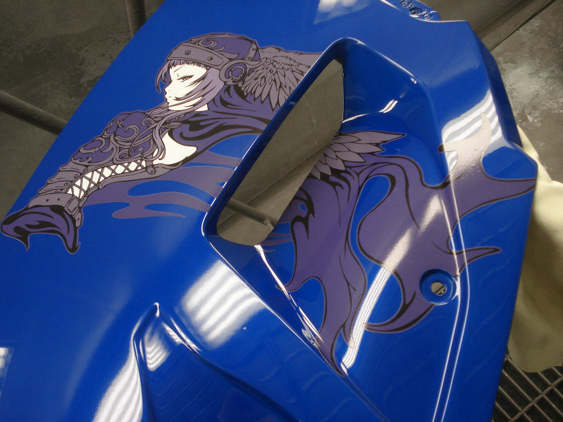そして実は今回のメインは「塗装」と言うよりも、どちらかと言うとオーナー様オリジナルデザインのステッカーの貼り付けなんですよね。シール作製は専門業者さんで作って貰ったそうです。確かに3M製で良く出来ています。