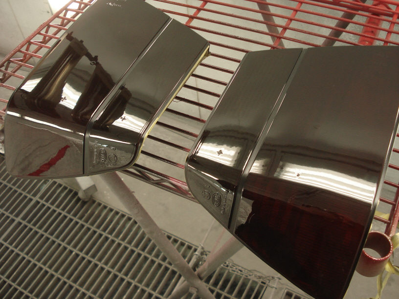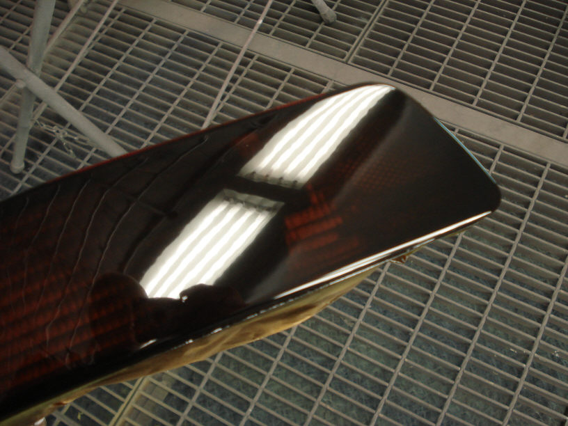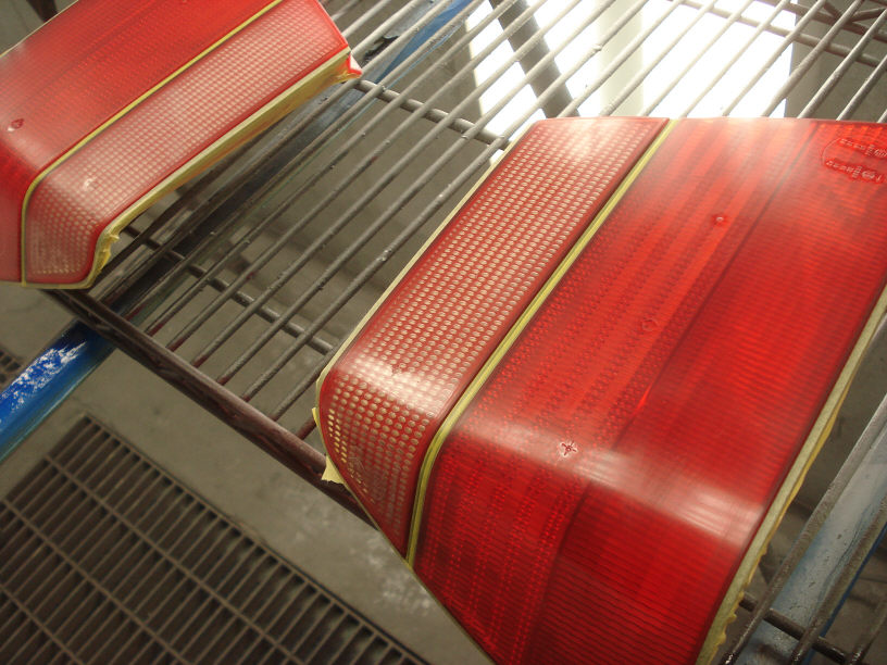 が、テールランプは元々プラスチックのツルツルですので、まさかそんな肌があっては駄目ですよね。これに限らず、「修理」で無ければ出来るだけツルツルの艶々のテカテカの方が良い筈ですので、そのように心がけて塗装を行っています。