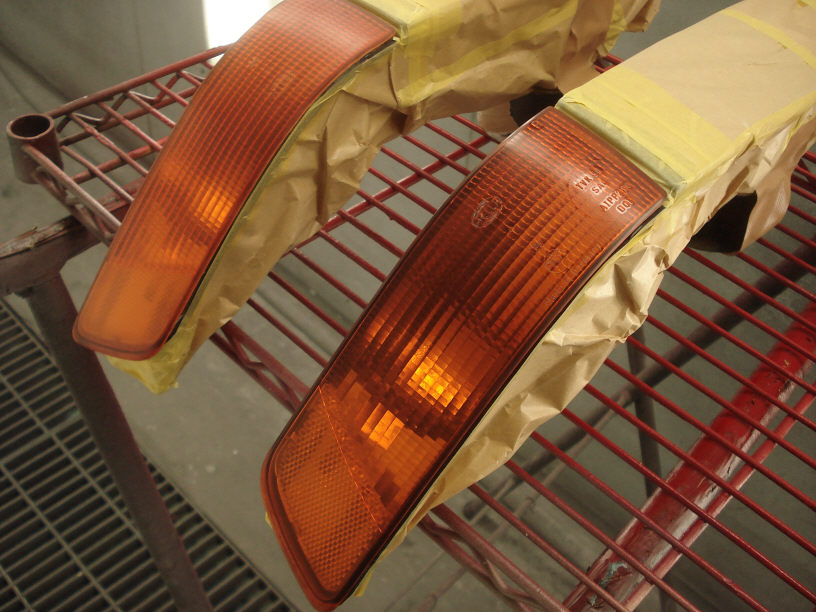 今回のBMWのレンズ一式と一緒に、別の案件でご依頼頂いております社外品のクリアサイドマーカーも一緒に塗装を行います。何卒ご了承下さいませ。