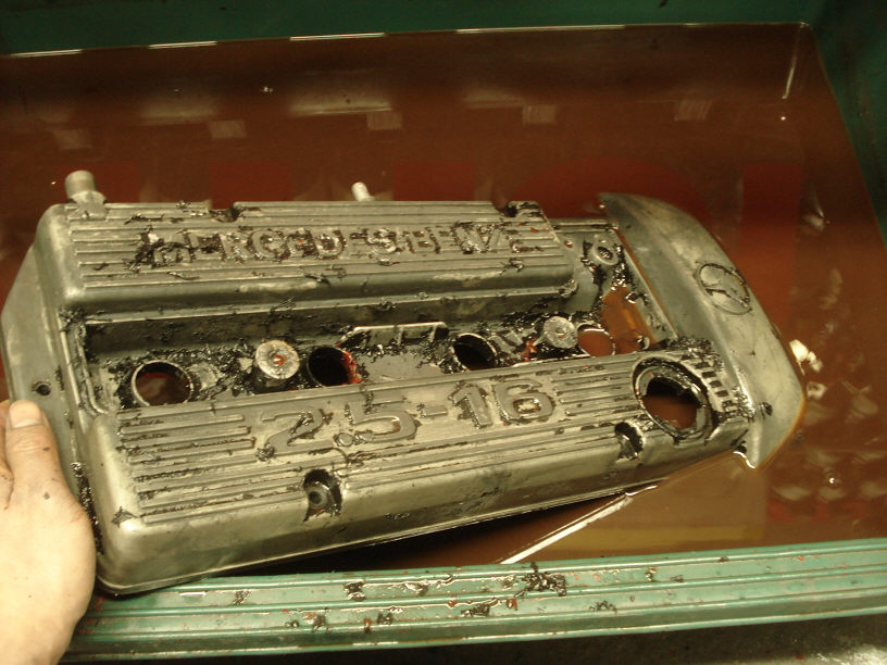 -25- メルセデスベンツのエンジンカバー 旧塗膜剥離中