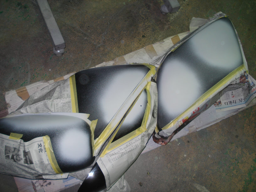 画像はサフェーサーをキッチリ研いだ状態ですね。いよいよ本塗りスタートです。