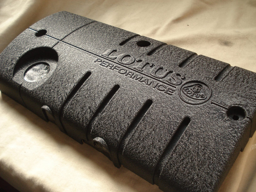 こちらはROVERエンジンを積んだロータスエリーゼのエンジンに被さる「樹脂製」のエンジンカバーですね。プラスチック製です。