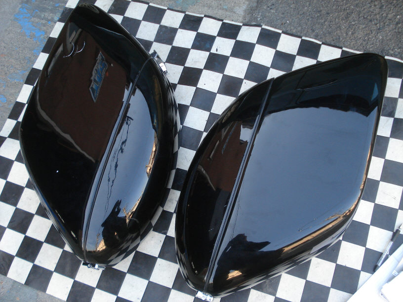 こちらはバイクのサイドボックスでして、車体の後方左右に付く箱ですね。先日購入したばかりとの事で、今は真っ黒に塗られています。