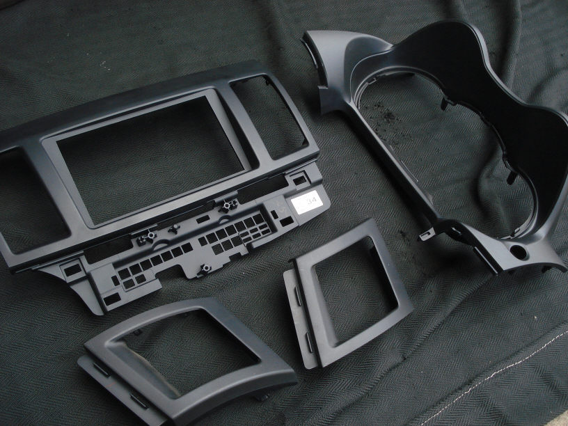 表面は全面シボがありますので、艶々仕上げの為にはこれらを平滑にしなければなりません。 また今回は部分的に「ラバーコート」(ゴムコーティング)がされた箇所があります。 これに普通に塗装をすると薄いゴム膜がどんどんチヂレて恐ろしい事態になります。また放っておくと何年か経ってベタベタになったりする場合もあります。フェラーリの内装なんかでは有名ですね。塗装屋殺し的な仕上げです。
