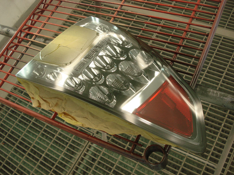 4輪自動車のテールランプの場合には「お釜」とレンズが一体になっていて内部が防水になっていますからマスキングするのは後ろの「お釜部分」になります。