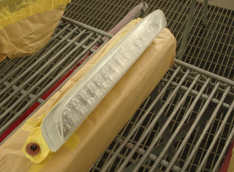 これと一緒に塗ったのがインプレッサのテールランプでして、そちらのクリアーが「クリスタルクリアー」(高機能クリアー)でのご指定でしたので、幸いにしてこちらもその仕様となりました。 余りに量的に違うようでしたらクリアー使い分けますが、これくらいであれば若干量ですのでわざわざ別にクリアー(同社イージークリアー)作る方が時間的コストが掛かるので、うちにとっては損失はありません。 オーナー様にとってはラッキーだった、という感じです。同じ時期に同じスモーク塗装でしたので。