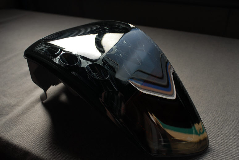 バイクのレンズの場合にはこういった「レンズ単体」になりますので、裏側というより「内部」をマスキングします。 適当なスモーク塗装とかやるとこういった内部のマスキングをおろそかにされ、普段は黒く見えてもブレーキランプ点けると内部に飛んだ塗装で「ムラ」や「スジ」が見えてしまったりします。