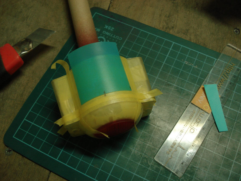 で、使うマスキングテープも「それ用」の物を使います。 通常の和紙タイプだとエッジがガタガタしますので、こういった「バツ切り」の場合にはプラスチック系のテープやシートを使用します。