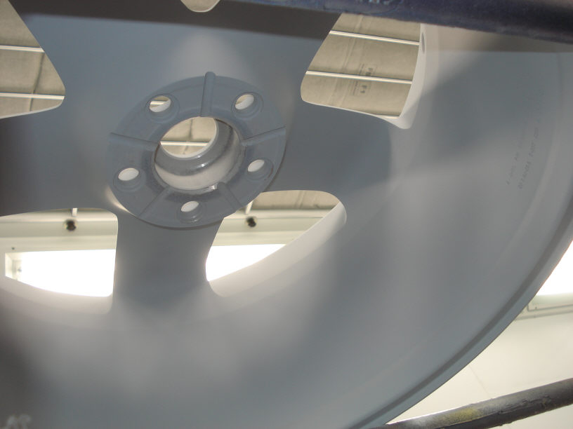 画像はホイールの内側ですね。 本塗りの時はぶら下げた状態で上から下から塗りますが、プライマーの時はひっくり返した状態で先に裏を塗ってしまい、終ったらひっくり返して表側を塗ります。